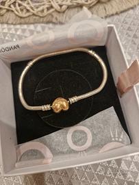 Vendo bracciali pandora 2 rigidi misura 23 uno con chiusura fiocco di neve e l'altro con chiusura cuore più infinito .