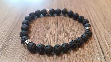 vendo bellissimo bracciale in pietra lavica con inserti in argento.nuovo