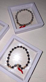 Vendo splendidi bracciali elastici con perline sfaccettate, caratterizzati dal classico ciondolo a cornetto rosso portafortuna e dettagli dorati a forma di stella. Un accessorio perfetto come idea regalo o per dare un tocco di colore e scaramanzia al proprio outfit.