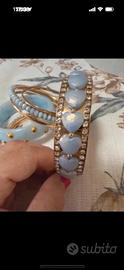 Set di 7 bracciali rigidi azzurri e color oro, ancora sigillati e con cartellino
