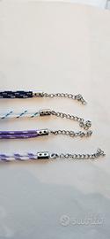 bracciali corda con il nodo PIANO, colore Blu/Bianco, Bianco/ Azzurro, Viola/Bianco, Bianco/Viola, 12 pezzi colori misti, misura 16-20 cm. materiali tutto in acciaio inossidabile.