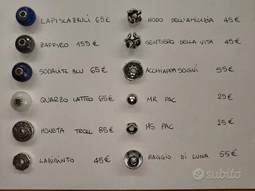 Vendo a blocco tutto quello che si vede dalle foto. N.3 Bracciali Trollbeads con pietre, vetri e beads in argento tutto ovviamente ORIGINALE, alcuni pezzi sono fuori produzione da tempo e alcuni sono edizioni limitate. Tutto ha un valore di listino pari a 1.565,00 Euro. VENDO A BLOCCO A 1.000,00 € Non spedisco, solo consegna a mano. Prezzo non trattabile non scambio con nulla. Grazie.