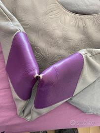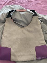 Ottima borsa a sacca a spalla Grigia con inserti neri, rosa e viola Unico piccolo difetto da segnalare come da ultima foto caricata