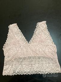 Bralette in pizzo rosa perfetta da indossare sotto un blazer o come un reggiseno un po più partcolare, presenta anche delle coppe che io ho rimosso, non adatto a grandi seni.