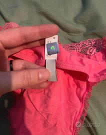Set 3 pezzi Nuovi con scatolina Cotone 2 color fragola e 1 color rosa chiaro Taglia L Pizzo sui bordi e roselline applicate sul bordo superiore