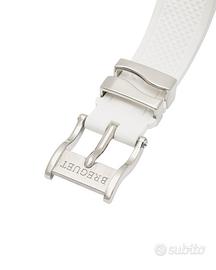 Breguet mariner lady ref 8818 white gold diamonds automatic 30mm Peso: 67.38 Misura polso 13/17 Materiale: Oro bianco Gemma: Diamante Anno: 2000 (circa) Corredo: Scatola e Garanzia 12 mesi del rivenditore Referenza: 8818BB Carica: Automatico Calibro: 537/1 Rubini: 20 Colore quadrante: Madreperla Corona: Zaffiro Diametro cassa: 30mm Materiale cassa: Oro bianco Materiale cinturino: Gomma Vetro: Zaffiro Cod: 7660-a