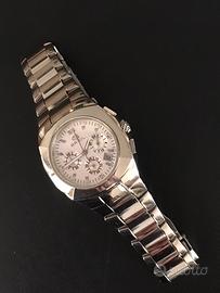 Particolare cronografo BREIL subacqueo 10 ATM con movimento al quarzo - orologio in ottimo stato (salvo normali segni di utilizzo) che funziona alla perfezione - orologio con cassa di forma di 37 mm di diametro adatto sia al polso maschile che femminile - dotato di tutto il suo corredo originario (come visibile in foto) - stupendo quadrante di colore argento con trama a nido d’ape e piccoli contatori argentati - lancette luminescenti - corona con logo serrata a vite - spettacolare bracciale inox originale integrato alla cassa ad andamento decrescente completo di tutte le maglie e di lunghezza massima con logo e scritta Breil sulla chiusura - orologio che si distingue per la particolare forma della cassa e per la sua raffinata e ricercata estetica