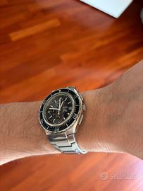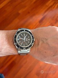 Esemplare originale in ogni sua parte, appartenente alla storica serie Manta. L'orologio è stato testato e risulta pienamente operativo in tutte le sue complicazioni, dettaglio non scontato per questo calibro vintage. • Movimento: Quarzo Multi-funzione cal. Miyota 0S80 (Precisione giapponese). • Complicazioni: • Cronografo analogico (precisione 1/10 sec). • Allarme/Sveglia sonora (impostabile tramite il pulsante a ore 8). • Indicazione 24 ore e Data (ore 3). • Cassa: Acciaio inossidabile 316L, diametro 41mm. Fondello serrato a vite. • Ghiera: Unidirezionale a 60 scatti, inserto nero con indici bianchi. • PERFETTAMENTE FUNZIONANTE (BATTERIA NUOVA).