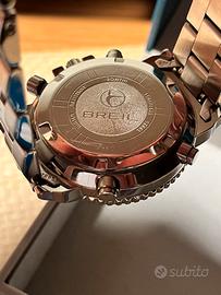 Orologio Breil Manta Diver 200m, 5 pulsanti, ghiera e corona a vite, ghiera 60 scatti precisissima, movimento cronografico Miyota 3S10, prolunga per indossarlo sopra la muta da sub, anno 1996 Full Set con scatola, cuscino e documenti. Venduto con batteria nuova, perfettamente funzionante in tutte le funzioni ed in condizioni perfette, nessun graffio su vetro e ghiera. Tutte le maglie del bracciale presenti