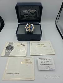 GP Watches - Trusted Dealer Mondani propone: - Breitling Chronomat 81950 Blu - Anno 1989, garanzia Italia - Condizioni ottime - Fibbia Originale - FULL SET (Scatola, libretti, garanzia Breitling) - nostra garanzia 12 mesi GP Watches Srl Via Sant'Eufemia 53 Modena 41121 Tel. Mostra numero
