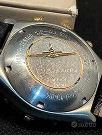 Vendo orologio marca Breitling modello Chronomat, prima serie referenza 81950 con Aermacchi al fondello, cronografo meccanico a carica automatica, cassa da 39mm, cinturino generico e fibbia originale.