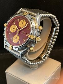 Vendo orologio marca Breitling modello Chronomat, prima serie referenza 81950, cronografo meccanico a carica automatica, cassa in acciaio da 39mm, quadrante Burgundy, bracciale Rouleaux.