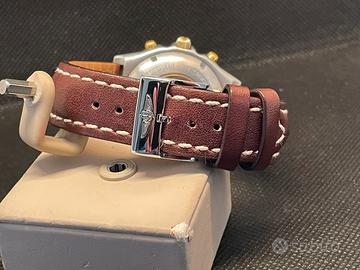 Vendo orologio marca Breitling modello Chronomat, primissima serie con Aermacchi al fondello referenza 81950, cronografo meccanico a carica automatica, cassa in acciaio da 39mm, cinturino e fibbia originale, no scatola no garanzia.
