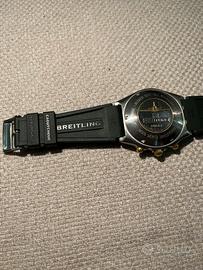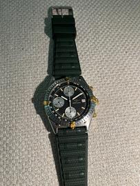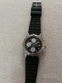 Vendo splendido orologio Breitling Chronomat ref. 81950A. Caratteristiche: - Cassa: in acciaio da 39mm (corona esclusa). - Corona: a vite. - Movimento: automatico Valjoux 7750 a 17rubini. - Fondello: originale con serraggio a vite. - Quadrante: originale nero con contatori bianchi/silver. - Cinturino: originale Breitling in caucciù rouleaux verde (con pochette originale). Disponibile ulteriore cinturino in pelle nera originale Breitling, nuovo mai usato. - Fibbia: originale. Funzionamento eccellente in ogni sua parte. Leggerissimo segno sulla cassa (non visibile da indossato). Per info e domande sono a completa disposizione. Prefiligo la consegna a mano per poter visionare insieme l’ottimo stato dell’orologio, oppure consegna mediante TuttoSubito. No perditempo, no offerte al ribasso.