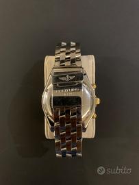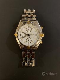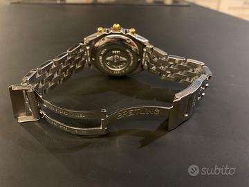Vendo stupendo cronografo automatico Breitling modello Chronomat B13048,con dial bianco,cinturino Pilot in acciaio con chiusura deployantè,cassa diametro 39x40 contatori del crono oro e datario ad ore 3,ghiera girevole unidirezionale in acciaio e oro giallo,corona di carica a vite,vetro zaffiro…orologio anni 90,revisionato 3 anni fa e mai più indossato..sono sprovvisto di scatola e documento originali…dichiaro che il bene è assolutamente originale..disponibile per qualsiasi prova,consegna a mano