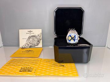 Orologio originale Commerciante con negozio fisico. SI RICEVE SU APPUNTAMENTO. Possibilita’ di spedizione in tutto il mondo. Trusted Seller su Chrono24 dal 2014. BREITLING CHRONOMAT B13050 FULL SET BLU Orologio in condizioni spettacolari, 40mm, quadrante blu, ref. B13050, bracciale Pilot, scatola, garanzia e libricini. Si valutano permute. Si rilascia certificato di originalita' e 12 mesi di garanzia. Si rilascia certificato The Watch Register. Pagamenti accettati: Contanti SOLO nei termini consentiti dalla legge. Bonifico istantaneo. Carta di credito in sede o a distanza. Pagamento anticipato. No assegni circolari. Contatti veloci al 3913798559 anche Whatsapp. Instagram: vladimiro_biagiolini_watchzone Facebook: watch zone orologi Tik Tok: orologi_watchzone watchzonestore.com