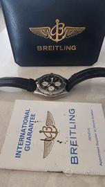Vendo da mia collezione raro Breitling Chronomat con quadrante panda, con cavalieri corona e pulsanti in acciaio, molto raro da trovare, completo di tutto il corredo originale con garanzia dell'epoca. Perfettamente funzionante,vetro perfetto senza graffi, tutto in condizioni eccellenti.