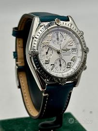 La Mole d’Oro propone un orologio Breitling Chronomat, referenza A13050.1, anni ’90, diametro 39 mm, movimento automatico: Marca Breitling Modello Chronomat Referenza A13050.1 Anno ’90 Diametro 39 mm Scatola Breitling, 1 anno di garanzia sul corretto funzionamento e lecita provenienza La Mole D’Oro.