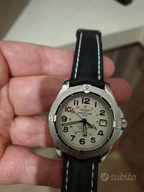 Orologio acquistato Nuovo nel 2022. Referenza A32350; cassa e bracciale in pelle originale Breitling; vetro zaffiro; quadrante bianco perlato con numeri arabi applicati e data ad ore 3; lunetta girevole in acciaio; movimento meccanico a carica automatica calibro Breitling B32 con funzione Gmt; impermeabile 50 ATM (550 mt); dimensione di cassa: diametro 40 mm, da ansa ad ansa 48 mm, spessore 13 mm; corredato di scatola documenti e garanzia originale di prima vendita datata febbraio 2022 riserva di carica 42 ore. COME NUOVO ACQUISTATO IN NOTA GIOIELLERIA DI LECCE