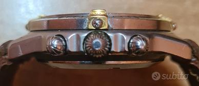 Cedo cronometro breitling callisto ref 80520 , anni 80, movimento lemania cal. 1873 , lo stesso montato anche su omega speedmaster moon watch, meccanico carica manuale, cassa acciaio 36.5mm ,fondello a vite, ghiera unidirezionale con cavalieri in oro 18k. Ceduto da privato, usato in ottime condizioni funzionali, no scatola , no documenti e garanzia , indicazioni come previsto per legge . Per le condizioni estetiche Prego considerare foto. Preferibile visione ritiro e pagamento contestuale diretto. Concordabile spedizione ma non assumo nessuna responsabilità per danni o smarrimenti. Prego no indecisi. grazie Breitling callisto chrono, late 80’. Very good condition. It keeps time and chrono works well. Movement based on Lemania 1873, same of Speedmaster Omega 861. Wonderful watch for a reasonable request. It does not pass away without have attracted eyes. It belongs to my private collection and I guarantee what you see in pictures.