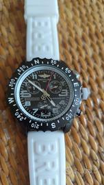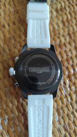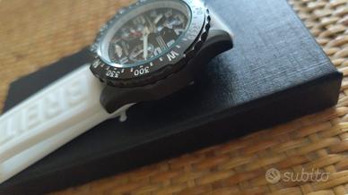 In vendita Breitling Endurance Chronometer, orologio sportivo svizzero di alta gamma con quadrante nero e cinturino in gomma bianca. Caratteristiche principali: ∙Marchio: Breitling 1884 – Swiss Made ∙Modello: Endurance Chronometer ∙Quadrante nero con numeri arabi bianchi ∙Funzione cronografo con lancetta dei secondi rossa ∙Scala pulsometro (30 pulsazioni) sull’anello interno ∙Lunetta girevole bidirezionale con indicatori N/S/E/W (bussola) ∙Cinturino in caucciù bianco con logo Breitling in rilievo ∙Cassa di grande formato (circa 44 mm) ∙Tre quadrantini secondari per le funzioni cronografo ∙Indicatore della data