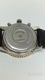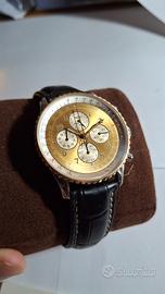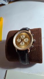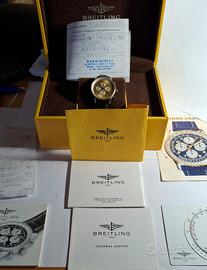 Breitling Navitimer Airborne Acciaio e Oro del 1994 - Full Set Un pezzo di storia dell'orologeria al tuo polso. Metti in vendita un esemplare raro e di grande fascino: un Breitling Navitimer Airborne del 1994, referenza D33030, completo di tutto il suo corredo originale. Questo orologio non è solo un segnatempo, ma un vero e proprio pezzo da collezione, che unisce l'eleganza del design classico Navitimer con la preziosità dei materiali e la storia di un'epoca iconica. Dettagli Tecnici e Caratteristiche: Modello: Breitling Navitimer Airborne Referenza: D33030 Anno di produzione: 1994 Cassa: 38 mm in acciaio, con ghiera girevole bidirezionale in oro giallo 18 carati. La ghiera con la sua "scala regolo calcolatore" è l'emblema del Navitimer, uno strumento indispensabile per i piloti del passato. Quadrante: Un'esclusiva e luminosa colorazione gialla, rara da trovare e di grande impatto visivo. Presenta tre contatori cronografici (30 minuti, 12 ore, piccoli secondi) e la data a ore 3. Le lancette e gli indici sono in oro, in perfetta armonia con la ghiera. Movimento: Cronografo automatico Breitling Calibro 33, basato sul Valjoux 7750, noto per la sua affidabilità e robustezza. Cinturino: In pelle di coccodrillo nero, con impunture bianche a contrasto. mantiene una marcia precisa e una perfetta funzionalità del cronografo. Corredo (Full Set): Questo orologio viene venduto con il suo corredo completo, un dettaglio fondamentale che ne aumenta notevolmente il valore collezionistico: Scatola originale Breitling Controscatola originale Documenti e garanzia Breitling Manuale d'istruzioni Questo Navitimer Airborne non è un semplice orologio, ma un investimento e un'opportunità unica per i collezionisti e gli amanti del brand. Condizione: Ottime condizioni generali, con lievi segni d'usura compatibili con l'età. L'orologio è stato revisionato regolarmente valuto permute con Zenith,Tag Heuer ecc