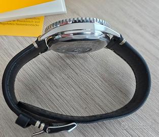 La meccanica non necessità di revisione ed ha segni di usura lievi. La scatola ha dei difetti e il corredo è completissimo. Secondo me la referenza più bella dei recenti Navitimer. Misura perfetta 41 mm indici a bacchetta che rendono il quadrante meno affollato.