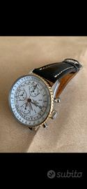 Vendo bellissimo breitling old navitimer del 1987 in buone condizioni generali, mai lucidato, regolarmente manutenuto negli anni con 5/6 revisioni effettuate e ultima fatta 6 anni fa (l orologio funziona bene ma consiglio di revisionarlo). Vendo anche scatola originale e set di 3 cinturini con cinturino in acciaio pilot. La lancetta a ore nove e’stata sostituita così come anche il vetro. Non chiedetemi la card garanzia perché è stata introdotta dai primi anni novanta. L orologio è stato registrato da Lamparelli concessionario ufficiale breitling di bari in una revisione effettuata negli anni.