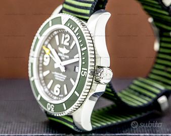 Vendo Bellissimo Breitling Superocean 44’’ Outerknown praticamente nuovo, regalo ricevuto per compleanno ma praticamente mai usato per la misura grande sul mio polso. La colorazione verde opaca è davvero bella, pezzo prodotto in pochi pezzi e ora fuori produzione. Full set e in aggiunta cinturino in gomma verde originale Breitling con doppia fibbia. Referenza; A17367A11L1W1 * Marca: BREITLING * Movimento: Automatico * Genere: Uomo * Diametro (mm): 44 * Materiale: Acciaio * Modello: Superocean * Stato: Eccellente * Vetro: Vetro zaffiro * Lunetta: Acciaio * Quadrante: Verde * Materiale del cinturino: Tessuto + Gomma * Data di acquisto: 2020 * Colore del cinturino: Verde * Numeri del quadrante: Arabi * Certificato di origine: Sì * Scatola originale: Sì * Referenza: A17367A11L1W1 Mi rendo disponibile per scambio a mano su Brescia e dintorni.
