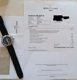 Vendo Breitling Superocean full set, orologio automatico con referenza A17360 con revisione fatta in casa madre in Svizzera, a Grenchen, nel novembre 2024, 2 anni in garanzia ancora attiva. Solo la revisione è costata 1433 franchi svizzeri, poco più di 1500 euro. L'orologio è stato praticamente riportato allo stato di nuovo, è presente fattura (che fa da garanzia). Bellissimo diver professionale, 150 ATM (1500 metri). Riserva di carica 42h, ottima luminescenza, calibro Breitling 17, cassa in acciaio 42mm. Bracciale Pilot originale e coevo Breitling in acciaio con tutte le maglie e i finali, nuovo, mai usato! Presenti tutte le card, libricini, certificato di originalità ecc.. Con scatola, cofanetto in bachelite, cuscino interno, tag Breitling. Tutto coevo e originale. Attualmente monta un cinturino in morbido caucciù di qualità con fibbia originale Breitling. Richiesta: 2200 euro trattabili. Considerando il valore della revisione (1500 euro), capite bene a quanto lo state realmente pagando.. Valuto scambi con orologi di pari valore o superiori,preferibilmente Omega, Zenith, Longines, Eberhard, Ebel El Primero, IWC. Sono un appassionato di orologi, non vendo per fini di lucro. Fidatevi delle mie ottime recensioni, se avete richieste sono a disposizione. Grazie!