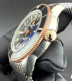 Strepitoso Breitling Superocean Heritage B31 Automatic 42 ref. UB3111241B1A1, cassa in acciaio e oro rosso 18k da42mm, cristallo zaffiro, sub 200m, fondello zaffiro a vista su calibro di manifattura B31 con 78 ore di riserva, ghiera ceramica, bracciale tipo Milano con chiusura butterfly, orologio solo messo a misura ma inusato totalmente pellicolato, corredo completo dicembre 2025 in garanzia ufficiale fino a dicembre 2030. Vendo a 4990 euro esclusa eventuale spedizione, possibile consegna su Milano. Non si effettua Tuttosubito.