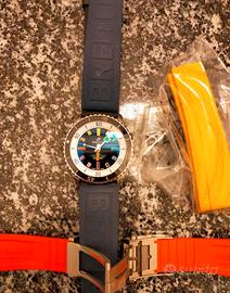 Buongiorno, come da titolo vendo fa collezione privata Breitling Superocean Rainbow 42 mm con triplo cinturino (arancio, giallo e blu). Acquistato in boutique l' estate scorsa e utilizzato al massimo una decina di volte. Perfetto e completo. Possibile comprarlo solo su sito a 5450 o in boutique allo stesso prezzo ma con lunghi tempi di attesa (molte boitique lo fanno sold out) quadrante mozzafiato.... Consegna esclusivamente a mano presso mia banca a Legnano dove custodito. Non spedisco. Grazie. Disposto a scambi (parziale permuta) con orologi di mio interesse e con cinguaglio a mio favore.