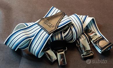 Bretelle sottili uomo e donna a Y con pattern a righe, blu, azzurro e bianco.