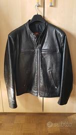 Cedo a 380 euro raro e magnifico CAFE' RACER JACKET BRISTOL LEATHER MOTOCYCLE, di origine USA, da Montreal (Canada) fine anni 70, in robusta e morbida pelle bovina nera in condizioni di PARI AL NUOVO, taglia 44 USA (52/54 Italiana), una pelle lucida, spessa e morbida al contempo. Questo giubbotto è usato ma in eccellenti condizioni. l'interno è trapuntato invernale, con 1 tasca interna verticale posta a destra con cerniera. La chiusura del bavero è quella classica dei CAFÈ RACER con colletto alla coreana provvisto di 2 borchie metalliche con chiusura a pressione, più retro-borchia per il fissaggio del laccetto al colletto. Sotto la cerniera centrale, è presente un piccolo bavero anti-aria. Nella parte anteriore il giubbotto possiede 2 tasche basse oblique con chiusura a zip, più due tasche orizzontali sul petto, la vestibilità del giubbotto é lunga oltre la cinta con vestibilità giusta. Questo modello non ha fibbie posteriori. Questo cafè racer ha soffietti posteriori come gli schott perfecto, le maniche hanno fodera spessa interna, anche i polsi hanno la chiusura con cerniera e tirante, come le giacche schott perfecto. Le cerniere sono ACME originali USA. Questo splendido capo ha le stesse caratteristiche qualitative dei giubbotti Schott, Avirex, Vanson, Trevor, Chevignon, Harley Davidson, Belstaff. Il giubbotto è praticamente intatto, nuovo e senza difetti, ed é adatto per motociclismo, cafè racer e custom. Le tasche sono sane e integre, le cerniere sono nuove e perfettamente funzionanti. La pelle non ha segni di usura, ne macchie e neppure tagli o abrasioni. Chi fosse interessato a questo stupendo giubbotto, può contattarmi al n. 339/7327355 oppure anche su whatsapp. Spedisco in tutta Italia con pacco postale tracciabile a 9 euro. Grazie. Gianpiero
