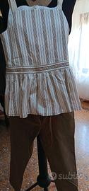 Brunello Cucinelli🐦made in Italy set tg. 42/IT pantalone leggermente elasticizzato colore marrone lunghezza 93 cm + camicetta smanicata fondo panna e riga marrone con zip laterale impreziosita con monili classici del brand.