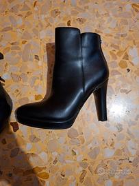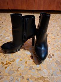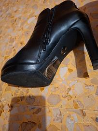 Stivaletti tronchetti originali Buffalo (numero 38), in pelle nera di alta qualità, modello con tacco alto e stabile a stiletto.