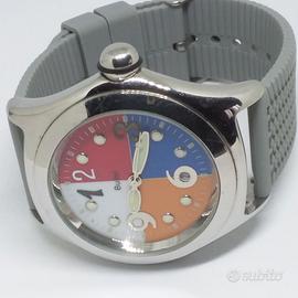 Corum designe,cassa acciaio da 45millimetri esclusa corona,corona e fondello a vite,vetro minerale,movimento myota alta qualita,bracciale in caucciu nuovo a sgancio rapido.funzionante.
