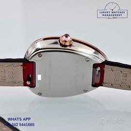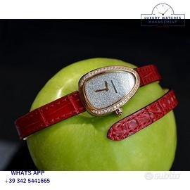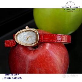 Bulgari Bvlgari Serpenti 32MM acciaio e oro rosa 18KT, anno di produzione 2025, ghiera oro rosa 18KT con inseriti diamanti naturali, vetro zaffiro antiriflesso, quadrante pavè diamanti con sfere oro rosa, movimento al quarzo batteria, cinturino in alligatore colore rosso con fibbia acciaio originale Bvlgari.