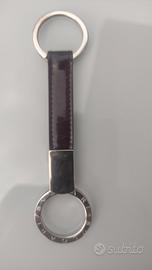 Bulgari portachiavi in pelle nera e metallo, argento.