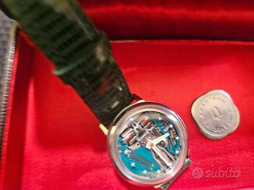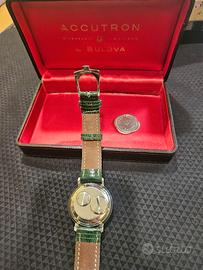 Vendo Bulova Accutron 214 serie M5 diametro 35mm perfettamente funzionante con batterie comuni. Dotato di astuccio originale, chiave bulova originale per apertura cassa, cinturino in lucertola nuovo, fibbia originale (nichelata), cristallo originale di ricambio. Perfetto. Spedizione a carico dell'acquirente o consegna a Torino o Piacenza