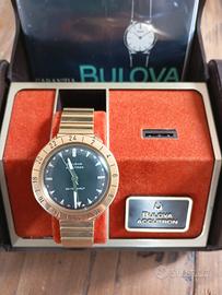 Vendo orologio Bulova Accutron Astronaut GMT in oro 18 carati (92 grammi) del '69 con scatola e garanzia dell'epoca. Assolutamente originale e perfettamente funzionante. Bracciale coevo sempre in oro 18 carati e cinturino in pelle Bulova. No permute, non trattabile, visibile solo presso mio istituto bancario.
