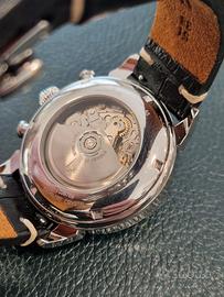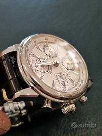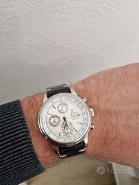 bulova gemini crono von valjoux 7750 quadrante argento perfettamente funzionante e garantito da nostro negozio con laboratorio. cassa mm41 cinturino pelle nuovo piu suo originale bulova ma usato. dichiaro che l'orologio e' originale e accompagnato da dichiarazione di lecita provenienza. disponibile per qualsiasi visione. valutiamo rolex omega breitling panerai tudor cartier longines zenith hamilton rado hublot eberhard swatch auto e moto d'epoca