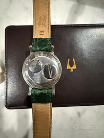 Anno di produzione 1966 , orologio originale , unico difetto , verro con lesione ad ore 10 (per gusto personale ho preferito non sostituirlo, essendo il vetro originale) il ricambio su Internet costa all’incirca 40 €. È presente la scatola originale dell’epoca, per qualsiasi informazione non esitate a contattarmi. L’orologio è stato revisionato ed è perfettamente funzionante.