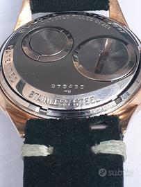 Elegante versione di bulova accutron spaceview del 1965 placcato oro fondello acciaio, cassa 34mm, revisionato, cinturino vellutino nuovo e fibbia generica batteria nuova sostituita. No scambi no permute. Oggetto originale collezione personale.