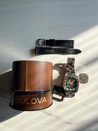 vendo bulova accutron spaceview del 1973 corredo completo di cinturino lucertola originale, moneta e scatola, parzialmente pellicolato, diversi cinturini tra cui uno in acciaio originale bulova. revisionato l'anno scorso, spacca il secondo.