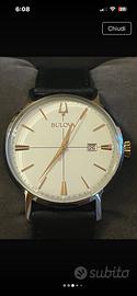 Orologio al Quarzo Bulova Aerojet 98B254. A Movimento al Quarzo. Cassa in Acciaio. Cinturino in pelle. Quadrante bianco. Cassa da 39mm. Impermeabilità all'acqua 30m. Indicatori e lancette placcati in oro rosa. Presenta un piccolo graffio quasi impercettibile a occhio nudo in corrispondenza dell'indicatore a ore 5 (si veda l’ultima foto). Acquistato in gioielleria e usato pochissime volte, con scatola documenti e garanzia (ormai scaduta) originali. Batteria al quarzo da sostituire.
