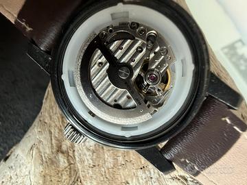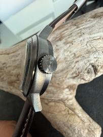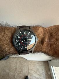 Vendo Bulova automatico modello military/field, referenza 98A255, dal look vintage militare. Caratteristiche: •Movimento automatico (Miyota – Citizen Group) •Carica automatica + manuale •Cassa acciaio con finitura scura (gunmetal) •Quadrante nero con numeri luminescenti (ottima visibilità notturna) •Scala 24h interna •Vetro bombato •Fondello a vite •Water resistant Condizioni: Orologio funzionante, con normali segni di utilizzo su cassa e vetro visibili in foto. Cinturino in pelle usato. Ottimo come everyday watch o stile militare. Prezzo: 160 € trattabili Disponibile spedizione o consegna a mano.