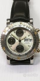 Bulova chrono automatico acciaio anni 90, movimento valjoux 7750 quadrante argentè, cinturino in pelle nera.