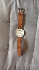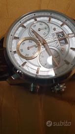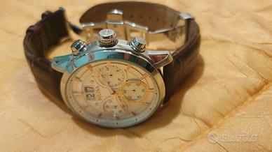 Orologio Bulova "Sutton Big Date". Funzione cronografica, quadrante bianco, lancette (luminescenti), cassa in acciaio da 44mm, resistente all'acqua 3 atmosfere, cinturino in pelle marrone con attacco deployante, batteria funzionante. A parte un piccolo graffio sul vetro ad ore 5 (più visibile in foto che dal vivo), l'orologio è in buono stato. Vendo completo di confezione originale e un cinturino scamosciato aggiuntivo. Garantisco e chiedo massima serietà, quindi prego astenersi affaristi e perditempo.