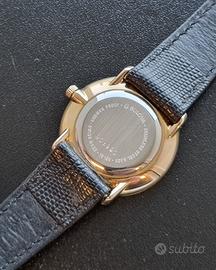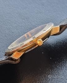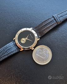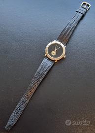 Elegante orologio solo tempo Bulova da donna placcato oro con quadrante nero e sfere dorate con secondina ore 6. Cinturino originale in pelle nera, raffinato movimento svizzero ETA 980.153 con ben 11 rubini perfettamente funzionante con batteria nuova. Usato ma in ottime condizioni, le foto sono parte integrante dell'annuncio. Se avete domande non esitate. Non scambio con Zenith Longines Omega Ebel Tissot